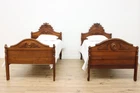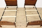 Item # 52814 This pair of Victorian period twin size beds have beautifully hand carved crests. American antique 1860s furniture Walnut with walnut burl accents Old varnish has been cleaned and preserved with a coat of clear finish Minor mars & shrinkage separations from age - see photos Two similar beds were adapted to standard modern twin size - see photos Cross supports and modern steel side rails included as shown Bed setup is not included Bed size is 84" long and 45" wide. Headboard is 53" tall and the footboard is 38" tall. Slats sit 14" from ground and the demonstrator mattress is 16" thick. Interior dimensions of the bed frame are 76” long and 39.5” wide. Please view 11 photos at full screen size for best detail. Related items in photos are sold separately. Important Shipping information: We offer significant discounts for shipping multiple pieces out of state. Posted ship rate based on GROUND FLOOR delivery from a trusted blanket wrap service provider. Most deliveries occur within 30 business days of payment, some slightly longer, some shorter. IMPORTANT: AZ, CA, CO, ID, MI, MT, NE, ND, NM, NV, OR, SD, UT, WA, WY and New York City are serviced by a courier van with ONE DRIVER , adequate physical help from the homeowner to unload is required. *Deliveries that require stairs or elevators take more time and can usually be completed with advance notice and a surcharge. *Items requiring a ferry or remote area (Mountain homes, Islands, Keys, etc.) may be excluded from posted rates. *Delivery to properties with COI requirements or limited hours for service may be excluded from posted rates or additional charges may apply. Contact us for more information. Discount rates available to many areas in WI, IL, MN as well as FREE Store Pick Up in Kaukauna, WI. Contact us for more information. Store Information Payment methods The Harp Gallery 2101 Progress Way Kaukauna, WI 54130 Shipping & Handling Buyer pays shipping. Contact us to request independent shipping quotes on Freight Items. Also visit our eBay store for shipping info . Sales tax 5.5% sales tax applicable for WI buyers and customer pickup in Kaukauna, WI. Customer Service & Return Policy We are only happy with satisfied customers! Please reach out to us with any concerns or questions. Return policy: 15% restocking fee/buyer pays return shipping.