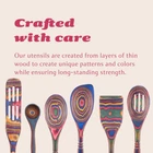 Pakkawood 6-Piece Utensil Set - Elegant Kitchen Spoon, Slotted Spoon, Corner Spoon, Spatula, 13”, 9" Double Measuring Spoon Spurtle - Heat Resistant & Non-Stick Utensils Product Details Color: Rainbow Brand: Island Bamboo MPN: Does not apply UPC: Does not apply EAN: Does not apply Material: Pakkawood Color: Rainbow Brand: Island Bamboo Item Weight: 1.7 Pounds Is Dishwasher Safe: No Material: Pakkawood Color: Rainbow Brand: Island Bamboo Item Weight: 1.7 Pounds Is Dishwasher Safe: No Shape: Rectangular Handle Material: Pakkawood Recommended Uses For Product: Cooking Manufacturer: Island Bamboo Package Dimensions: 14.48 x 12.05 x 1.18 inches Item Weight: 1.74 pounds Country of Origin: China Is Discontinued By Manufacturer: No Date First Available: November 6, 2020 Save Your Cookware - Unlike many metal or plastic cooking spoon sets, Island Bamboo Pakkawood will not leave scratches on your pots and pans. They're also nonstick and don't require tons of scrubbing and soaking to clean. Pakkawood is heat resistant and won't melt into your food like plastics (yikes!), keeping you safe from harmful chemicals and toxins. 6-Piece Pakkawood Kitchen Utensil Set with Gift Bag - This beautiful and exotic utensil collection includes a 12" spoon, slotted spoon, corner spoon, & spatula, 13" slotted spurtle, and a 9" double measuring spoon. This set is a perfect way to add a creative touch to your kitchen. Spice Up Your Kitchen - Pakkawood is crafted from many layers of beautiful hardwoods, and infused with natural and chemical-free dyes. The final result is a colorful piece of functional art, with no two utensils looking the same. Toss your drab black plastic spoons out and opt for the exotic! Due to the handmade nature of our products, there may be slight variations in color and/or craftsmanship. Protect the Planet - We all know that plastics are bad for the environment and are harming the earth, but what are we doing to stop it? Do your part and invest in chemical-free cooking utensils. You'll not only be making a healthier choice for the planet, you'll also be making a healthier choice for you. Make Clean-Up Easy - These non-stick utensils are quick and easy to clean and take the hassle out of kitchen clean-up. For best results, hand wash with warm soapy water and towel dry. As a precaution, we do not recommend soaking for long periods of time, as this can eventually damage the wood.
