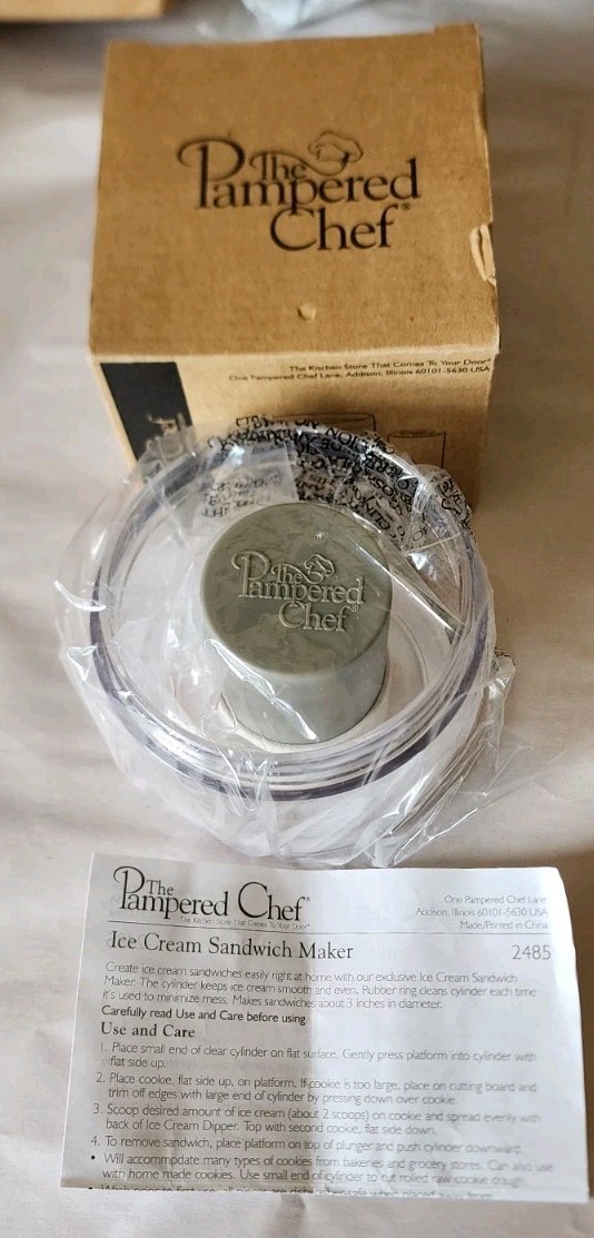 The Pampered Chef 8-piece Mixed Item Lot includes a variety of kitchen gadgets and tools in colorful, multicolor designs. Made from mixed materials, these items are a combination of new and lightly used pieces that have been pampered and cared for by the original owners. Perfect for enhancing your culinary experience, this collection offers a range of tools to help you cook up delicious meals with ease. -59"x49" zip up & carry black/white paisley hot pink trim cushioned picnic blanket. Open, not used -BBQ Skewer set #2701. New In bag -Ice cream sandwich maker. New. #2485 -Make & Take mason jar carrier. New. #1438 -9" baking tin. Lightly Used -Daisy Dessert plates (set of 4) New. #2818 -Infusion water bottle. New. #1287 -One easy accent decorator. Lightly used #1775 Most have original packaging. Boxes show slight wear.