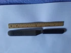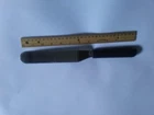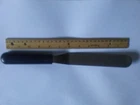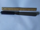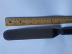 The Pampered chef utensil measures 1 1/4 inch wide and blade part is 6 inches long. Over all utensil measures 13 inches. Not sure what it is used for. Maybe a spreader? Seems to narrow to be a spatula and to awkward to be a spreader. Either way, someone out there must know what to use it as. Stainless steel with pampered chef emblem, see pics. Great shape.