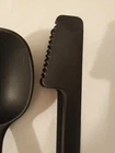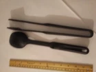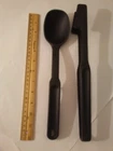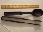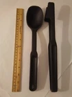 these are Pampered chef utensils. the cooking spoon and the serrated tongs. both are lightly used, still nice. black, nylon, heavy duty, heat resistant.
