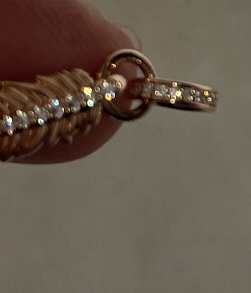 Pandora 14K Rose Gold, Sparkling Feather, Dangle Charm 789550C01 New