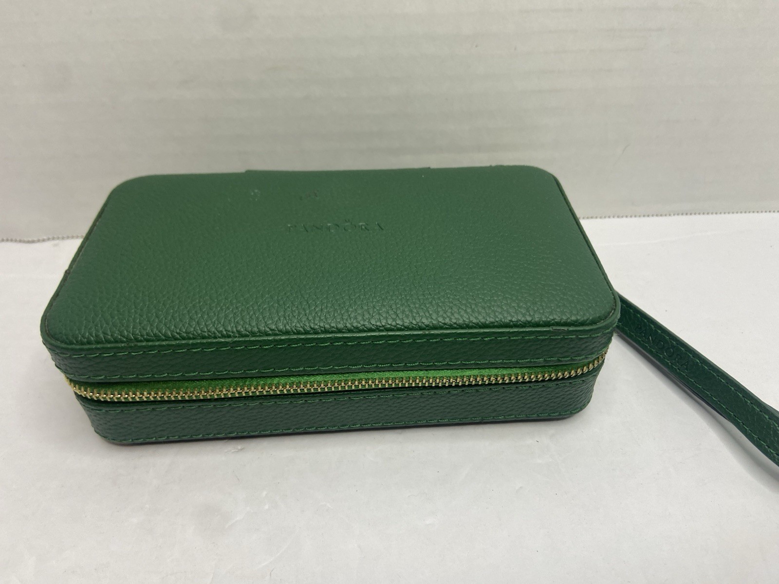 The Pandora Green Wristlet Wallet Jewelry Pouch is a stylish and practical accessory for organizing your jewelry. Made from faux leather with a velvet lining, this rectangular-shaped pouch is perfect for storing bracelets, rings, and earrings. With a zip-around closure and a capacity of 20 pieces, this storage box is ideal for travels and on-the-go use. The green color adds a pop of elegance to your jewelry collection, making it a perfect gift promo for any jewelry lover.