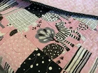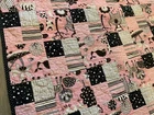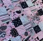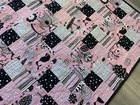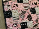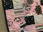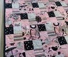 Up for sale is a patchwork crib quilt. The patchwork design is four patch. The fabrics are whimsical animals, dots, checks, stripes. The colors are pink, white, black, grey. Cotton. Machine quilted. The border is black and white dots, hand sewn. The back is pink flower fleece type fabric. Very soft. Medium thickness. Measures 38” by 38”. Very, very good condition. Hand made. Made in USA. Name written in one corner on the back. Very cute and fun quilt. Very, very good craftsmanship. 🌹🌹🌹🌹🌸🐇🌸 Thanks and happy shopping. I will combine shipping charges. Smoke free home. Please make payment in three days ~~~~🌹🌻🌷Please visit my eBay store: 🇺🇸webbsamericancountry1🇺🇸 for over 2000 vintage and collectible items. 🌺🌼🌹