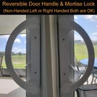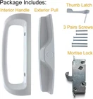 Patio Door Handle Set + Mortise Lock 45° Perfect for Sliding Glass Door Fits 3-15/16” Screw Hole Spacing, Non-keyed with Latch Locks,White Diecast,Reversible DesignNon-Handed ☛【 COST EFFECTIVE TO REPLACE OLD OR BROKEN DOOR HANDLES】: When your door handle is broken, old or unsightly, don’t replace the door entirely, just get a new sliding patio door handle set! Our patio door handle + mortise patio door / sliding door lock set is the most economical and useful you can find. ☛【INCLUDES】: Interior Handle, Exterior Pull,Mortise lock, Thumb Latch, 6XScrews. Standard reversible, non-handed handle set that can be mounted on both left-handed and right-handed sliding patio doors. 45° Mortise latch lock which can be used on sliding patio doors constructed of wood, aluminum and don't need to buy other components if you get our handle set. ☛【EASY INSTALLATION】:This is a DIY project in the box. For handles with 3-15/16” for 2 screw distance & a Mortise (Latching style) lock. Remove 2 screws from existing handles, insert Latch, align inside and outside handles with Pre-drilled door holes, insert screws, tighten and your done. Includes 6 screws with 3 different sizes: Large ", Medium ", Small " ☛【REVERSIBLE DOOR HANDLE & MORTISE LOCK】:Also known as "Non-Handed”. Our handle is designed for Right or Left-Handed or the door that opens from the left or the right, YOUR CHOICE! Comes with sliding door latch . ☛【NON-KEYED】:The exterior die-cast pull comes non-keyed. This handle is NOT CONVERTIBLE WITH KEY FUNCTION AT THIS TIME!