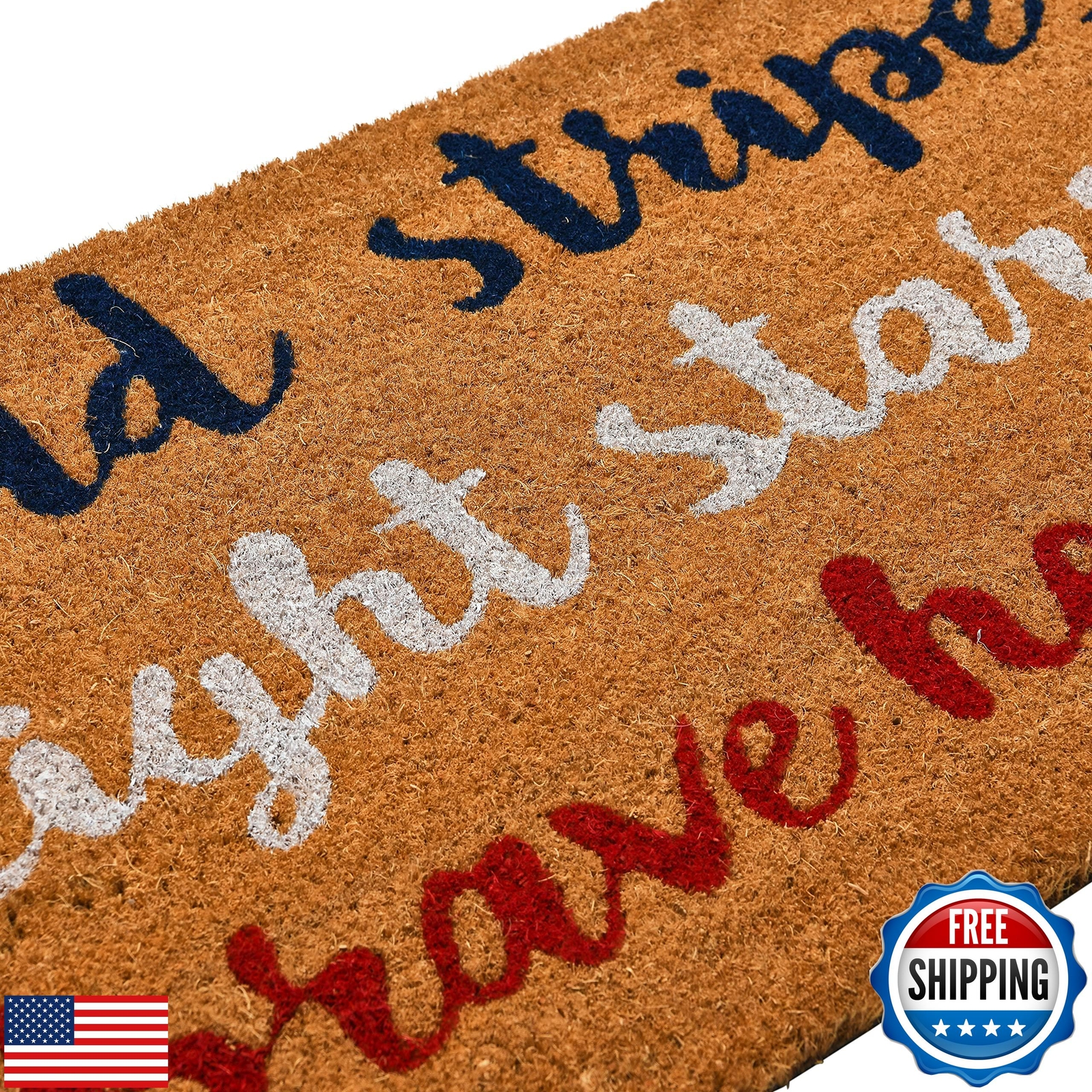 Creative Co-Op Coir Entry Doormat with Patriotic Message, "Bold stripes, bright stars, brave hearts" with non-slip liner backing-Americana, July 4th or Memorial Day Summer Entry Mat, Red, White and Blue Features Patriotic doormat adds style and a 'stars and stripes' tribute message to the front door of your home Coir doormat features tough bristles and a non-slip PVC liner backing for increased durability This welcome mat adds red, white and blue patriotic message to your home décor The doormat reads "bold stripes, bright stars, brave hearts" Doormat measures 16" in width, 32" in length, and .06" in height Shipping Free & Fast Shipping: We offer free shipping to most of the USA with a normal delivery time of 3-7 days. However, due to the current situation, additional delivery time (up to 3 weeks) may be required for some items. Alternative Carriers: We may use alternative carriers (e.g., USPS, FedEx, UPS) to ensure your package arrives safely and on time. Due to the use of multiple carriers, we are unable to provide a tracking number automatically. Handling Time: Orders are processed and shipped within 1-2 business days of receiving cleared payment. Shipping Restrictions: Shipping to Alaska, Hawaii, Puerto Rico, Guam, and other US territories may incur shipping charges or delivery restrictions. Please contact us before ordering, or your order can be refunded/cancelled. State Restrictions: Certain items may not be shipped to California due to state regulations. Contact for Tracking Updates: If you require tracking updates or have any concerns about the delivery of your order, please feel free to contact us, and we will be happy to assist you. Return Policy 30-Day Hassle-Free Returns: If you are not completely satisfied with your purchase, you can return the item for free within 30 days of receiving it for a full refund or exchange. Easy Return Process: Contact us, and we will provide you with a prepaid return shipping label and detailed instructions. No Restocking Fee: There are no restocking fees for returns. However, the buyer is responsible for return shipping costs if the return is not due to a seller's error. Refund Processing: Refunds will be processed within 1 business day of receiving the returned item in its original condition. Payment We accept all major credit cards, PayPal, and Apple Pay for your convenience. Your payment information is secure and encrypted to ensure a safe and seamless transaction. Please complete your payment within 3 days of purchase to avoid any delays in shipping. Feedback Your feedback is extremely important to us. We strive to provide the best products and customer service possible. If you are satisfied with your purchase, please take a moment to leave us a positive review. If you have any concerns or issues with your order, please contact us before leaving negative feedback. We are committed to resolving any problems and ensuring your satisfaction. Contact Us If you have any questions or concerns, please feel free to reach out to our customer support team. You can contact us through the eBay messaging system. We are available Monday to Friday, 9:00 am to 5:00 pm EST, and we will do our best to respond to your inquiry within 24 hours. Thank you for supporting our small family business!