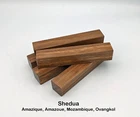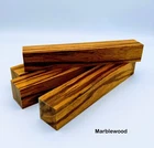 Choose the species and size from the drop-downs. Price is for a single blank. Shipping starts at $4.29. The photos are from stock we cut and buffed to show the grain and figure. The blanks in the photos are for reference only. The items for sale are from the same or similar stock. Measurements are approximate and may vary slightly ( +/- 1/8" ). Burl blanks may contain inclusions and voids. Since we cut these to order, other sizes are available. Please message me if you desire another size or shape. We are happy to help. If you would like to consider a bulk purchase, please contact me. Here is a list of our available species: Ababa: Rare wood with a unique color palette, ideal for striking pen blanks. Argentine Lignum Vitae: Extremely dense and durable, perfect for high-end pens. Ash - Black: Strong grain pattern, offers a bold look for pens. Ash - French: Tight grain with a subtle appearance, great for classic pen designs. Ash - White: Light color with fine texture, excellent for a clean pen finish. Beli: Distinctive striping, adds visual interest to pen blanks. Bhilwara: Dense and durable with rich hues, suitable for long-lasting pens. Birch - African Bog: Dark, aged wood, creates a unique, antique feel for pens. Birch - African Bog w/sapwood: Contrasting colors for a striking pen blank. Birch, Caramelized: Warm tones and smooth texture, ideal for elegant pens. Birch - Curly: Beautifully figured wood, adds dynamic movement to pens. Bloodwood: Deep red color, offers a dramatic and luxurious pen. Bocote: Eye-catching grain patterns, creates stunning pen designs. Boxwood - Castello: Fine-grained and pale, perfect for intricate pen carving. Brazilian Blackheart (Pau Santo): Rich, dark tones, ideal for sophisticated pen blanks. Brazilian Tigerwood: Bold striping, adds a wild, exotic look to pens. Brazilian Tigerwood - XG: Extra-figured grain, enhances the visual impact of pens. Brazilwood (Pernambuco): Vibrant color and high density, excellent for premium pens. Brownheart: Smooth texture with a warm hue, perfect for understated elegance. Bubinga: Reddish-brown with fine figuring, adds luxury to pen designs. Bubinga - Figured: Highly figured, makes for eye-catching, intricate pens. California Cottonwood: Soft with subtle grain, ideal for light, easy-to-work pen blanks. Camel Thorn: Dense and hard, offers durability with a striking red hue. Canarywood: Bright yellow with red streaks, creates vibrant, lively pens. Catalpa: Light and easy to work, great for beginners and natural finishes. Cedar - Port Orford: Fragrant with fine grain, perfect for aromatic, lightweight pens. Cedar - Red: Rich, aromatic wood, ideal for traditional, warm-toned pens. Cerejeira (Braz. Oak, Amburana): Fine texture with a golden hue, offers a classic look. Cerejeira - Crotchwood: Intricate figuring, ideal for unique, eye-catching pens. Ceylon Satinwood: Golden sheen with a fine texture, perfect for high-end pens. Chakte Viga (Paela): Bright orange with fine grain, creates bold and distinctive pens. Cherry: Warm red tones, classic and popular for all types of pens. Cherry - Figured: Adds dynamic patterns, enhancing the traditional cherry look. Chinaberry: Unique grain and color, great for a rustic or natural pen finish. Cocobolo: Rich color with striking patterns, ideal for luxury pens. Cocobolo - Crosscut: Reveals intricate cross-grain patterns, adds complexity. Cocobolo - Exhibition Grade: Premium quality with the most vibrant colors and patterns. Cocobolo with Sapwood: Contrasting sapwood adds a bold, unique appearance. Crepe Myrtle (Pyinma): Fine grain with a warm hue, ideal for detailed work. Crepe Myrtle (Pyinma) - XG: Extra-figured, offers enhanced visual depth. Ebiara (Red Zebrawood): Striped appearance, perfect for exotic and vibrant pens. Ebony, Bolivian (Coffeewood): Dark and dense, ideal for sleek, sophisticated pens. Ebony - Brazilian (Gombeira): Deep black color with a smooth texture, excellent for premium pens. Ebony - Gabon - 4" Length: Jet black, perfect for sleek and polished pen designs. Ebony - Gabon - 5" Length: Longer lengths, ideal for larger or custom pen projects. Ebony - Striped: Black with light streaks, creates a striking, high-contrast pen. Edinam (Tiama): Warm brown with fine grain, great for smooth and elegant pens. Elm: Attractive grain and medium hardness, perfect for a classic look. Etimoe: Reddish-brown with a tight grain, adds subtle elegance to pens. Eucalyptus: Light and easy to work with, ideal for pens with a natural finish. Granadillo: Reddish-brown with a fine texture, excellent for detailed, durable pens. Granadillo - Figured: Enhanced figuring adds visual interest to the pen. Hackberry: Light-colored with subtle grain, great for custom finishes. Hackberry - Spalted: Unique spalting patterns, creates stunning and one-of-a-kind pens. Hickory (reclaimed): Strong and durable, with a rustic appearance for rugged pens. Holly: Bright white, perfect for contrasting or detailed work. Imbuia: Rich, dark wood with a pleasant aroma, ideal for elegant pens. Indian Laurel: Dense with a rich color, perfect for high-quality, durable pens. Ipe: Extremely dense and durable, great for heavy-use pens. Ironwood - Moluccan: Incredibly hard with a deep brown color, excellent for long-lasting pens. Ironwood - Sonoran Desert: Dense and durable with striking grain patterns, perfect for rugged and unique pens. Ironwood - Sonoran Desert - XG: Extra-figured, enhances the natural beauty and visual impact. Itauba: Golden-brown with a smooth texture, ideal for a warm, elegant pen. Jarrah: Reddish with a rich grain, great for classic pen designs. Jatoba (Brazilian Cherry): Extremely hard with a deep red hue, perfect for high-durability pens. Kentucky Coffee Tree: Light color with a fine grain, ideal for easy finishing. Khaya (African Mahogany): Warm color with a straight grain, perfect for classic, smooth pens. Kiaat (Muninga): Attractive golden-brown with interlocking grain, adds character to pens. Kingwood: