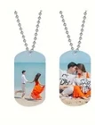 This personalized custom photo dog tag necklace features a rectangular pendant made of silver stainless steel, with a length of 23.5 inches. The necklace can be customized with a photo or text of your choice, making it a unique and thoughtful gift. The pendant is reversible and adjustable, allowing for versatile styling options. Simply provide the desired personalization details in the "contact seller" section when placing your order. The chain can be shortened providing length of your choice, as shown in 1 of the pictures for a double set of dog tag photos.