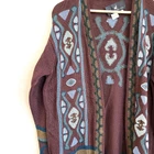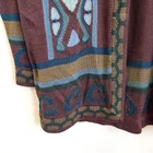 Western Southwestern Open Front Knit Long Sleeve 100% Pima Cotton Peruvian Connection Boho Moroccan Colorful Sweater Duster Jumper Jacket Tunic Kimono 100% Pima Cotton Made in Bolivia Thick heavy tight knit open front sweater Beautiful rich fall colors of brown teal and green Hand wash Sz Medium armpit 21 sleeve 21 length 31 Beautiful condition with tag detached on one side see pic