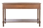 [DESIGNER DETAILS]: Add a chic touch of style to your home with this inviting console table; Features a brown finish, antique black metal pulls, and herringbone details on its drawers [CONVENIENT STORAGE AND DISPLAY SPACE]: Three (3) drawers and one (1) lower shelf provide convenient storage space and its top surface is perfect for a table lamp, picture frames, or any other decorative accessories [PERFECT SIZE FOR ANY ROOM]: Full dimensions are 47.3" wide x 13" deep x 29.5" high and beautifully enhances the living room, dining room, bedroom, hallway, foyer, study, or home office [EASY ASSEMBLY]: Includes step-by-step instructions and hardware to make assembly easy and hassle-free [TRUSTED BRAND]: has been a trusted brand and leader in home furnishings for over 100 years, using their specialty and expertise in crafting the trendiest and highest quality designs and selection of colors; Begin your rug and furniture search with and explore over 100,000 products today