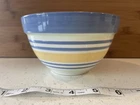 Add a touch of vintage charm to your table setting with this beautiful Pfaltzgraff Summer Breeze cereal bowl. The round stoneware bowl features a lovely yellow and blue striped pattern with a glossy finish. Measuring 6 inches in diameter and 3.25 inches in height, it's the perfect size for a serving of cereal or soup. This is part of the Pfaltzgraff product line and was manufactured in Thailand using pottery production techniques. The backstamp is printed and the model is Summer Breeze. Suitable for all occasions, this cereal bowl is a must-have addition to your collection. There are no chips or cracks in this bowl. There are a few surface level marks from utensils. From a smoke-free home.