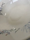 This Pfaltzgraff serving bowl features a Winter Frost pattern with pine needles and cones design. The round bowl is 10.5 inches in diameter and made of stoneware in off white with blue grey and purple colors. It is stackable, microwave and dishwasher safe, and decorated with a floral and nature theme. This retired piece is perfect for Christmas, Winter, New Year's, Thanksgiving, or any occasion. Beautiful addition to your tableware collection I have numerous pieces!