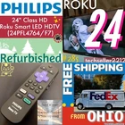 PHILIPS 24" Class HD Roku Smart LED HDTV - 24PFL4764/F7 Product details Philips 24" Class HD Roku Smart LED HDTV (24PFL4764/F7) is a smart TV that’s simple to use, with tons of free content. Stream your favorite entertainment, get access to your cable box or HD antenna, or even fire up your gaming console – all from your home screen. With an easy-to-use remote and automatic software updates, Smart TV has never been easier. Roku Smart HDTV: Enjoy 150,000+ movies and TV episodes High Definition: 720p for ultra-sharp images Built-in Wireless: Easily connect to your wireless network via Wireless LAN 802.11ac Free Roku Mobile App: Makes it easy and fun to control your Roku TV 120 Perfect Motion Rate: 120 PMR delivers unprecedented motion sharpness to your TV Fast and Easy search: Search by title, actor, director to see where to stream your favorite shows for free or at the lowest price Works with Apple AirPlay: Effortlessly stream videos, photos, music, and more from your Apple device to your TV with AirPlay Works with Voice Assistant: Enjoy easy voice control with Hey Google, Alexa, and Siri R2 Grade : C6F3 Hereby certified renewed product is inspected in the US for OEM specifications and factory initialization for a clean device. Shop with confidence! “As an certified service center, we strictly enforce data sanitization, and we have confirmed that the renewed products sold here do not contain data.”