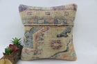 Pillow for Couch, 14"x14" Beige Pillow, Ethnical Kilim Rug Pillow, Boho Pillow
