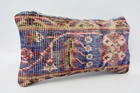 Pillow for Sofa, Antique Pillows, 8"x16" Blue Cushion Case, Kilim Pillow