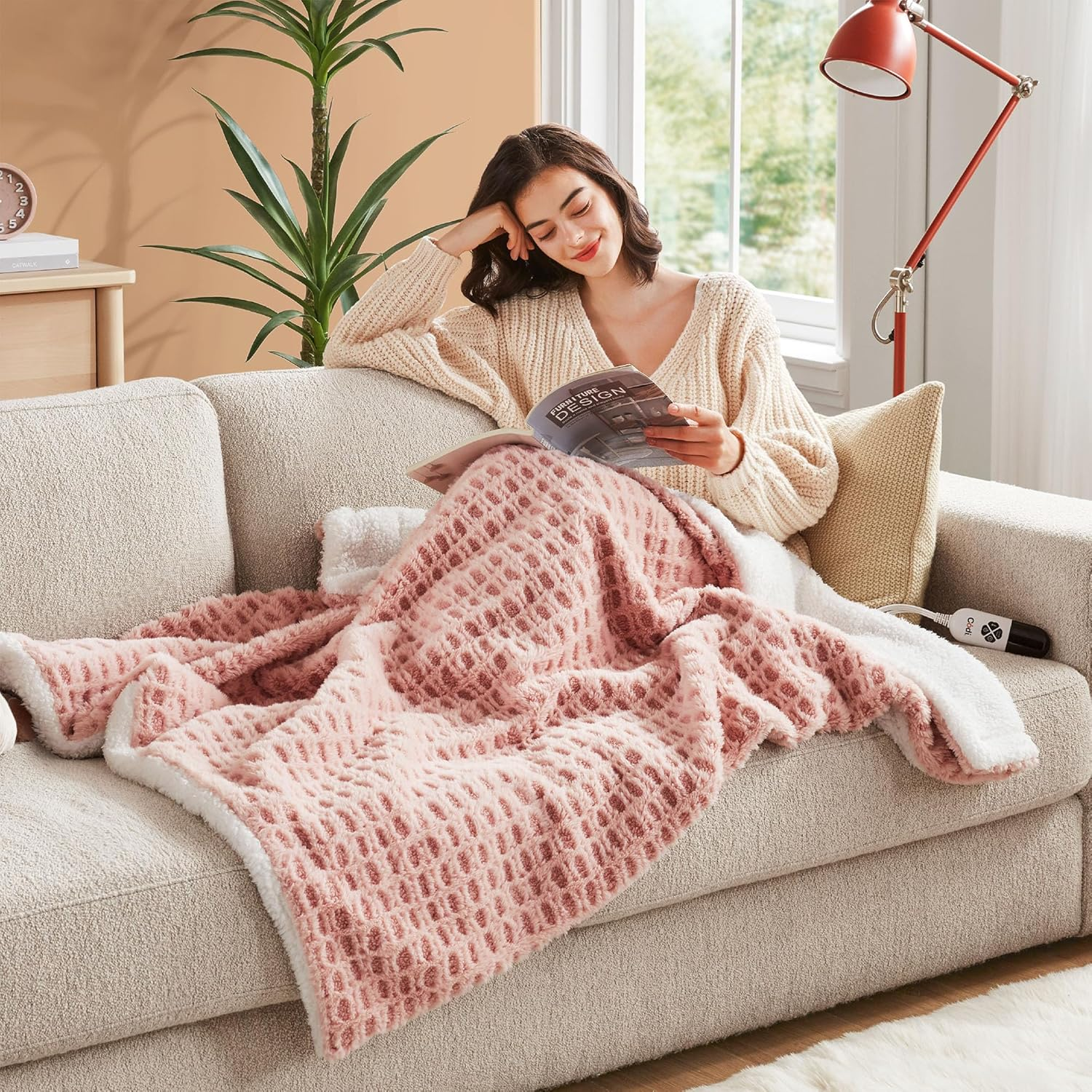 Store New Arrivals Add to Favorite View Feedback Contact Faux Fur Heated Throw Blanket for Women, Pink Luxury Soft Heating Blankets with Fuzzy Sherpa Back, Electric Throws for Sofa as a Great Gift, 6 Heat Setting with 2H Auto Shut Off, 50"X 60" Description Unit Count 1.0 Count Style Contemporary Product Dimensions 60"L x 50"W Number of Items 1 Fabric Warmth Description Heavyweight Color Pink Pattern Solid Material Polyester Water Resistance Level Not Water Resistant Item Weight 5.33 pounds Blanket Form Throw Blanket Theme Faux Fur Age Range (Description) Adult Recommended Uses For Product Reading Seasons All Special Feature Corded Fabric Type Faux Fur,fuzzy Sherpa Back Product Care Instructions Machine Wash Soft Versatile Throw Blanket: Codi's faux fur heated Throw is incredibly soft and plush, providing excellent heat preservation. Perfect for use on the couch, sofa, or bed. Its function is the similar to a heated pad, which can protect your knees, waist, neck, and various parts of the body. Customizable Comfort: With 6 programmable heat settings and an easy push-button design for temperature adjustment, you can tailor your heat preferences to your liking. Additionally, the blanket features an automatic shut-off function within 4 hours for both safety and energy saving. Safety and Innovation: ETL certified for safety, our blanket utilizes advanced spot welding technology to secure heating elements, preventing overlaps and ensuring optimal safety by avoiding excessive heat. The elegant faux fur design makes it a sophisticated gift choice. Cost-Effective Heating: In the midst of the frigid winter, our Codi heated blanket offers significant savings on heating bills. It consumes only a fraction of the electricity cost, reducing your winter expenses. What's more, the fleece Sherpa lining doubles the warmth, even during a power outage. Easy Maintenance: Our heating blanket is conveniently machine washable and dryer safe. Simply remove the controller and allow it to cool down before cleaning. For complete care instructions, be sure to read the user manual. Product Description ABOUT US We offer the best prices around on high quality products. Our E-store includes media such as books, movies, music and games while offering electronics, toys, sporting apparel, clothing, tools, general home, garden items and more. SHIPPING We are always working hard to ensure your package arrives as soon as possible. Please understand that some factors like weather, high postal traffic, and the performance of shipping companies are outside of our control. We offer free shipping to the lower 48 states and ship within 2 business days of payment, usually sooner. We do not accept P.O. Boxes. Please provide a physical address. For shipping outside of the continental USA, we only use eBay's Global Shipping Program.The item is shipped to KY and then sent to the rest of the world. International customers are responsible for all duties and taxes. Continue to check out in order to calculate costs for shipping the item to your country. Messages regarding eBay's Global Shipping Program MUST be directed at eBay EXCLUSIVELY. RETURNS We offer a 30-Day Return Policy on items which you are not completely satisfied with. You have the option for a full-refund or an exchange of the item. No returns are available on items shipped outside of the USA. PAYMENT We accept PayPal. CONTACT US This page content is yet to come Please ad us to your favorite seller and visit again later Thank You CUSTOMER SATISFACTION We try our very best to make sure every customer is completely satisfied. If there's a problem, message us! We're happy to help.