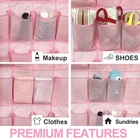 【24 Big Pockets】: The size of this Homyfort pink over the door shoe organizer is 61.4”x22”, with 24 large pockets, which is deep enough to hold most kinds of shoes, such as casual athletic shoes, low leather boots, flats, sandals, slippers, women boats shoes, high heels, men running sneakers, kids sports shoes, etc. 【4 Upgraded Hooks】: This pink hanging shoe organizer for closet comes with 4 sturdy metal hooks for easy installation and with good load-bearing. The hook of this pink shoe rack for closet door after the upgrade is more stable and fits doors with different thickness within 1 2/3 inches such as closet door, cabinet door, pantry door, cruise door or on the wall. 【Breathable & Durable Material】: This pink door shoe rack for girls is made of breathable non-woven fabric, which is more durable and with better ventilation than the plastic/vinyl ones, no worry about the smells. 【Multi-purpose】: This kids shoe organizer over the door is not only a shoe storage organizer but also an shoe holder for household cleaning supplies, kids toys, kitchen tools, bathroom items. Even some of our customers use it for growing vegetables! 【100% Satisfaction】: If you are still hesitate about the quality, there is no need at all. Please feel free to contact us if you have any questions, we are always here and will try our best to give you a 100% satisfactory solution. So, please give this zapateras organizer for shoes a try:) Product Description 4 Upgraded Metal Hooks This pink hanging shoe storage holder comes with 4 sturdy metal hooks for easy installation and with good load-bearing. The hook after the upgrade is more stable and fits doors with different thickness within 1 2/3 inches such as closet door, cabinet door, pantry door, cruise door or on the wall. 24 Big Pockets The size of this Homyfort over the door shoe organizer is 61.4”x22”, with 24 large pockets, which is deep enough to hold most kinds of shoes, such as casual athletic shoes, low leather boots, flats, sandals, slippers, women boats shoes, high heels, men running sneakers, kids sports shoes, etc. Breathable & Durable Material This shoe organizer for door is made of breathable non-woven fabric, which is more durable and with better ventilation than the plastic/vinyl ones available in most grocery store, no worry about the smells.