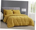 Return Policy Fast Delivery Trusted seller Piper Queen Bed in a Bag 7-Pieces Honeycomb Hexagon Quilted Soft Washed Double Brushed Microfiber Comforter with Sheets Lightweight All Season Bedding Set (Queen, Mustard Yellow) Product Description Piper 7-Piece Bed in a Bag Comforter Set Includes: 1 Comforter, 2 Shams, 1 Flat Sheet, 1 Fitted Sheet, 2 Pillowcases Queen Size Measurements: Comforter 90" x 92", Shams 20" x 26", Flat Sheet 90" x 102", Fitted Sheet 60" x 80" +14", Pillowcases 20" x 30" Features a honeycomb geometric hexagon stitch pattern that exhibits an modern casual look and feel. An attractive crinkled effect fabric formed by stone-wash which enhances the aesthetics of the. Included are matching solid color sheet set pieces to easily pair with your décor. The fitted sheets are made with 360 degrees elastic cord with deep pockets to fit mattresses up to 14". Made of 100% microfiber polyester, the fabric is 95 GSM which indicates a higher thread density for a stronger, more durable fabric with 220 GSM poly filling. The fabric is also brushed to create a super soft and smooth velvety texture making this a versatile lightweight feel, suitable for year-round use. Easy Care - Machine washable in cold water, tumble dry low, do not bleach Made in OEKO-TEX Standard 100 factory, an independent certification system that stands for customer confidence by ensuring textiles are tested for harmful substances and meets high product safety and environmental standards Shipping Returns Payment Shipping Shipping is FREE to all addresses other than APO/PO boxes in the lower 48 states. All our stock ships from US-based warehouses. Shipped via USPS or UPS (depending on location and package weight) Unless stated otherwise, all orders will ship within 24-72 hours of your payment being processed. Check our feedback to see the great reviews of FAST shipping we offer. Returns Seller does not accept returns Payment We currently accept payment via eBay managed payments only. Once payment is cleared, we will dispatch your shipment within 1-3 business days. Please refer to the "Shipping" tab for more information regarding shipping speed to your destination.