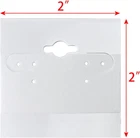 HANGING EARRING CARDS - 100 high-quality hanging earring cards with 6 holes to hold various earrings such as studs, clusters, drops, hoops, chandeliers, Halo, huggie, and climber earrings. EARRING DISPLAY- Elevate your jewelry display with our sophisticated White Velvet Fabric Earring Cards. These elegant fold-out tab earring cards offer both style and security, all while boasting a luxurious black velvet fabric for an undeniably sleek aesthetic. Earring Organizer: Our earring cards can efficiently store or display earrings, offering space-saving and organizational benefits. EARRING ORGANIZER: We provide the best hanging earring cards. With two decades of experience in the United States market, we have gained a deep understanding of our customer's requirements, allowing us to tailor both the quality and design of our products to meet your needs. MATERIAL & SIZE - Flocked plastic; Overall: 2"W x 2"H Official MOOCA product. Accessories are NOT included Product Description FEATURES Perfect and elegant earring cards for hanging earrings. Featuring precut 6 holes which are suitable for a variety of earrings. Perfect for organizing your earring in place. Made of high-quality plastic and come in a pack of 100 pieces. Elegant and sophisticated earring cards Sleek and simple This plain white plastic earring card holder is sleek and simple. Illuminating your earrings on display. Pack of 100 pieces These cards come in a pack of 100 pieces for multiple earrings. For a variety of earrings. Efficient and practical design The earring card can be hung in 2 different ways. Either on a rack or a hook. Perfect for displays This earring card is perfect for displaying at trade shows, shops, etc. Easy to use and saves space. 100 Pcs Hanging Earring Card Holders, Plain White Overall: 2"W x 2"H each