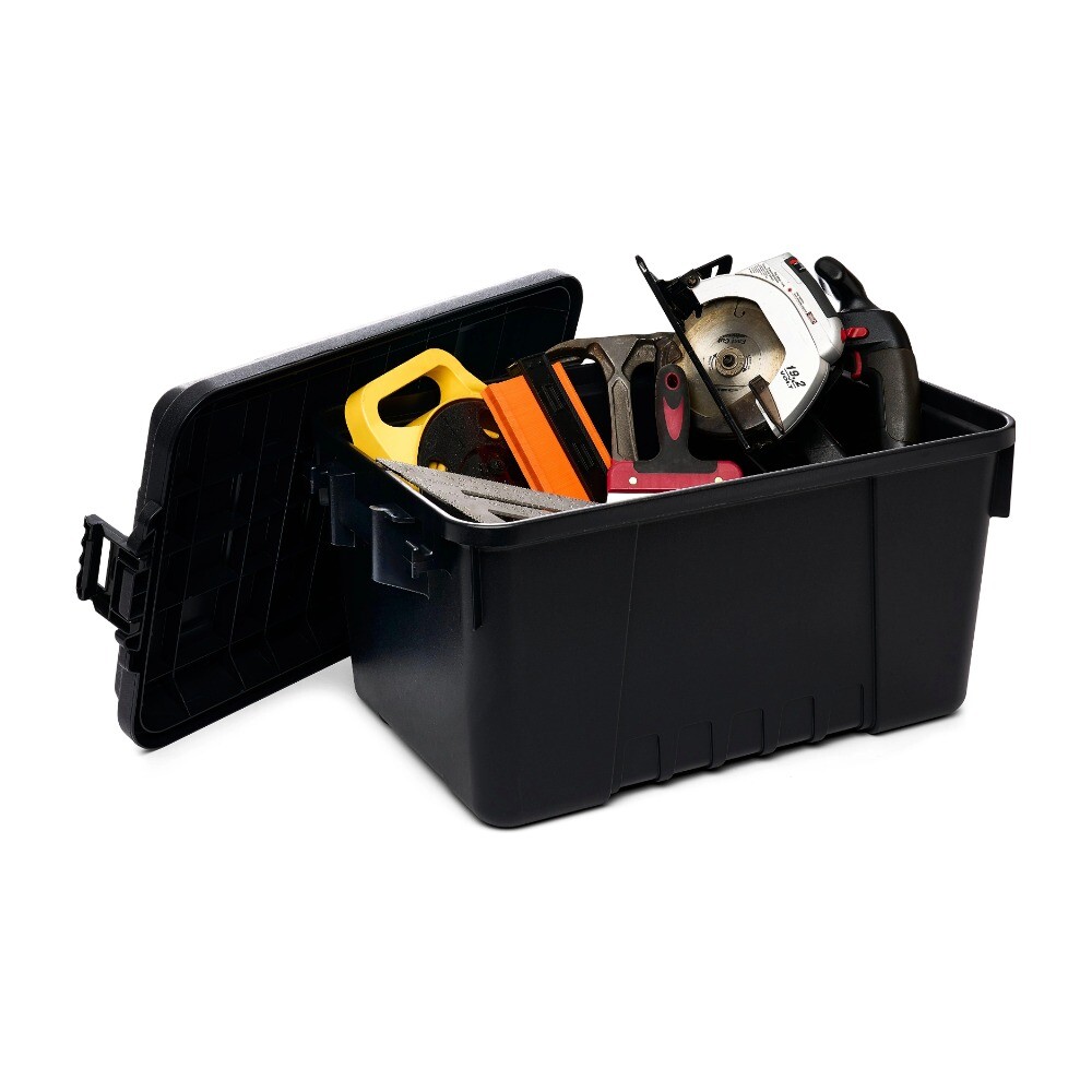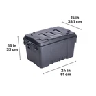 Plano Sportsman's Trunk 3 Pack, Black, 14-Gallon Lockable Storage Box 3 Trunks in one box provides built-in efficiency and value PLANO SPORTSMAN’S STORAGE TRUNK: Store or take your tools, hunting gear, ammunition, camping supplies and more on the go with the Plano Sportsman’s Trunk. With a 14-gallon capacity, the possibilities are endless. LOCKABLE & WEATHER-RESISTANT: Tough, snap-down latches secure the lid shut – keeping loads secure and weather out. Padlock tabs provide maximum security.