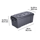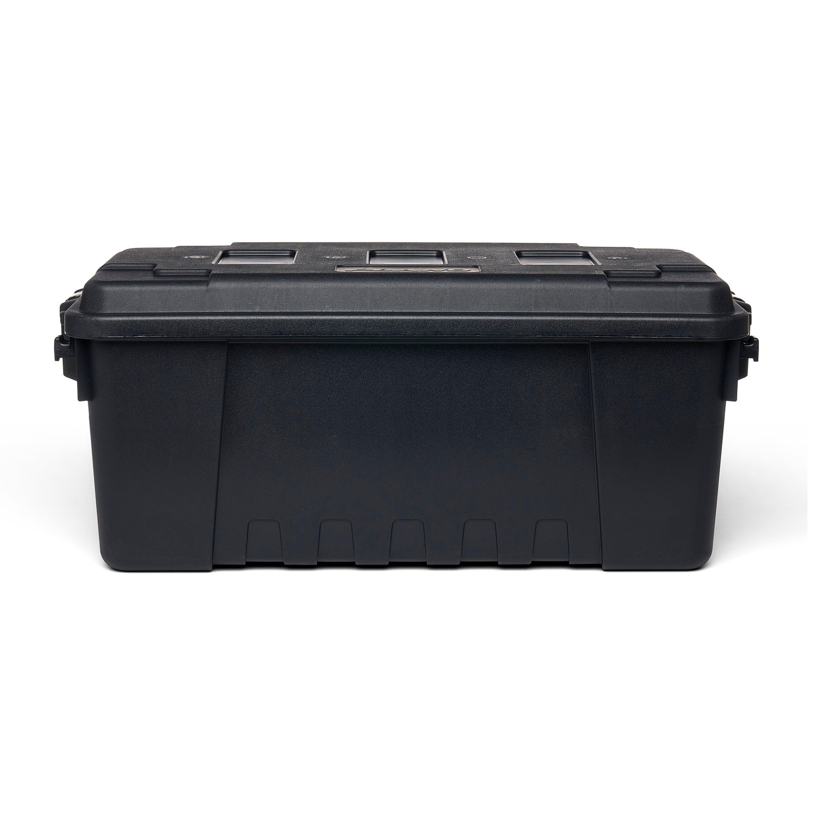 The Sportsman's Trunk has a spacious interior for extra-large objects – perfect for all your bulky and oversized equipment. Durable and lightweight, this impact-resistant plastic trunk features comfortable recessed handles for easy transport even when loaded. Tie-down points on either side provide stability when on the move. Life can box you in. Work. Household chores. Every after-school activity ever. Ironically, the best way to break free is with a box. And not just any box, but a PLANO. We've been helping anglers, hunters, and outdoor-loving families bust out of their routines for over 70 years. From tackle boxes to storage trunks to coolers – all as smartly designed as they are rugged. So you can keep all your gear neatly stowed and ready to throw in the truck whenever adventure calls. Hit the road while the bite is hot. And be ready to make your getaway every chance you get. PLANO SPORTSMAN’S STORAGE TRUNK: Store or take your tools, hunting gear, ammunition, camping supplies and more on the go with the Plano Sportsman’s Trunk. With a 14-gallon capacity, the possibilities are endless. DURABLE CONSTRUCTION: Reusable storage that stands the test of time. This heavy-duty storage bin is made from high-impact plastic with molded grooves for sturdy stacking, and a reinforced removable lid. LOCKABLE & WEATHER-RESISTANT: Tough, snap-down latches secure the lid shut – keeping loads secure and weather out. Padlock tabs provide maximum security. PREMIUM STORAGE INDOORS AND OUTDOORS: These black storage bins fit easily in the closet, attic, garage or storage shed. Tie-down points on either side provide stability during transport in a truck, boat or plane. PRODUCT SPECIFICATIONS: Total capacity of 17 gallons. Interior dimensions: 26"L x 11.25"W x 11.25"H. Exterior Dimensions: 30"L x 14.25"W x 12.75"H. Black. DESIGNED FOR CONVENIENCE: The stackable design saves space and won't get crushed under weight. Integrated easy-glide wheels and smooth recessed handles make for easy transport and hauling from the truck to the campsite or hunting blind. PLANO has been helping anglers, hunters, and outdoor-loving families bust out of their routines for over 70 years. BE PLANO READY. Enjoy your pursuit to the fullest.