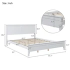 Description The white bed is crafted with pine wood and MDF.The elegant simple slat design headboard of this wood white bed adopts an exquisite flat design to complete the bedroom style. A standard mattress is recommended.If ''simplicity'' and ''elegance''are the words you live by,then look no further: you've found the right dresser for your treasure's room! We like its versatile look,which blends easily with whatever might inspire you...and we guarantee you'll like it as much as we do! Product Features 1.Stylish and simple platform white full bed for your choice; bed frame is made of pine wood, extra small legs in the middle for strong construction and high load capacity. 2.Solid, tapered wood legs provide a touch of Sophistication. 3.Coated with a natural and exquisite wear-resistant finish, the bed frame is easy to clean, and brings a comfortable atmosphere and feeling to your sleeping space. 4.All the instructions and hardware required for the assembly of this white wooden platform bed with headboard are included. 5.Its classic color is easy to integrate with your furniture and bring comfortable visual experience for your home. Specifications Weight Capacity 600LBS Frame Material Pine Wood + MDF Box Spring Required No Is it compatible with adjustable beds compatible, as long as the buyer does not install bed slats Recommended mattress thickness 5~8" Clearance from Floor to Underside of Bed 7.8" Numbers of Slats Included 10 Center Support Legs Yes Mattress Included No Assembly Required Yes Package Number 1 Package Includes: 1 x Bed Frame Note: 1. Please allow 0-2 cm error due to manual measurement. Thanks for your understanding. 2. Monitors are not calibrated same, item color displayed in photos may be showing slightly different from the real object. Please take the real one as standard. 3. Please kindly note that this product needs to be assembled by yourself.