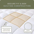 EXTRA THICK MATTRESS TOPPER WITH 3INCH LOFTINESS. Our extra thick full size mattress topper with its 3inch gusset filled with 110oz soft & plush down alternative fiber adds an extra layer of softness to your firm mattress providing you the bouncy feel and cloud-like sleep comfort. PILLOW TOP MATTRESS TOPPER FOR BACK PAIN RELIEF. Filled with premium quality 3D & 6D plush microfiber, this generously filled mattress topper finds a good balance between softness and cushioning and offers optimized support for your hips, shoulders, back, and knees to avoid back ache and leaves you feeling well rested when morning comes. COOLING & BREATHABLE MATTRESS TOPPER. Encased in the softest, lightest and breathable 100% cotton fabric, our mattress topper retain less heat and maintains optimal temperature. No more sweaty nights caused by memory foam pads or traditional mattresses SECURE FIT & BOX QUILTING CONSTRUCTION. Our mattress topper with 4 corner elastic straps adapts to mattress depths from 6" to 22" and ensures a secure fit and allow you toss and turn freely. The box quilting construction prevents the evenly distributed fillings from shifting as you sleep to offer you the most consistent comfort. TIPS FOR USE. It is not necessary to wash your pillowtop before use as it is clean. For best results, tumble dry it on a low heat before use to fluff up the fibers. To extend your bed topper’s life and reduce the need to wash it, position a mattress protector/ fitted sheet over it. Wash bi-annually in a front loader machine on a cool wash. *Please do not use a top loader machine as the agitators destroy the fibers.