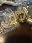 Polished Brass and Round Handles Dead Bolt and Knob are keyed the same. Each comes with 2 keys. The boxes are beat up, but everything inside is brand new. If you buy more then one, they will all be keyed the same. So you can put on all your exterior doors and the key will be the same.