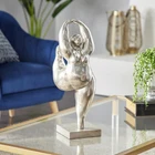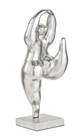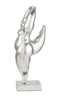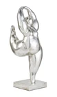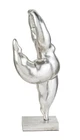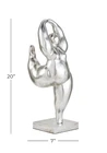 This realistic dancing human figurine showcases dynamic ballet movement through the use of lengthened limbs in its design. It has a polystone-made body, a smooth glossy silver surface, and a flat square platform. Place it on a bare wooden furniture surface or on a mantelpiece inside a modern-themed room to admire its design concept. Item is 20" high and should be cleaned using a slightly damp cloth only. Defined by shapes of motion, this sculpture is an elegant addition to your modern-themed home space. Wipe clean with a dry cloth. Figurine can double as paperweight. Suitable for indoor use only. Modern design. This item comes shipped in carton. MODERN THEME: Features a modern style inspired by a minimalistic design with clean lines and angular structures MADE WITH POLYSTONE: This figurine is crafted with solid polystone SILVER MATTE FINISH: A dancer sculpture in a semi shine frosted silver finish on a matte gray stone FEATURES DANCER SCULPTURE: This sculpture features a bold figure of a dancing lady with frosted inspired color CONVENIENTLY SIZED: It measures 7"L x 8"W x 20"H and weighs 7 lbs