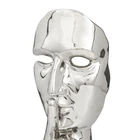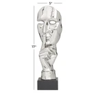 This item will elevate any living space and bring some dimensions and texture to your surface space. Give your corners and spaces a bold an elegant statement piece with this face sculpture as center or accent piece on your tables. Designed with felt or rubber stoppers at the base that prevent scratching furniture and table tops, as well as sliding around. This item ships in 1 carton. Please note that this item is for decorative use only. Polystone sculpture makes a great gift for any occasion. Suitable for indoor use only. This item ships fully assembled in piece. This is a single silver colored statue. Contemporary style. CONTEMPORARY DECORATIVE STATUE: Embrace artistic expression with a style that highlights bold designs with sleek lines, neutral elements, and a minimalist aesthetic POLYSTONE SCULPTURAL ACCENT: A contemporary abstract sculpture made of high-quality and glossy ceramic with an mdf base SILVER AND BLACK HOME DECOR FIGURINE: Hand and face sculpture flaunts a high gloss metallic silver finish set in a soot black base ACCENT STATUE: An ornate 2D full with hands gestured to keep quiet is the embodiment of this table sculpture decor LARGE SIZE SCULPTURAL STATUE: The silver polystone sculpture measures 5.20L x 4.75W x 17.20H inches, and weighs 3.14 lbs