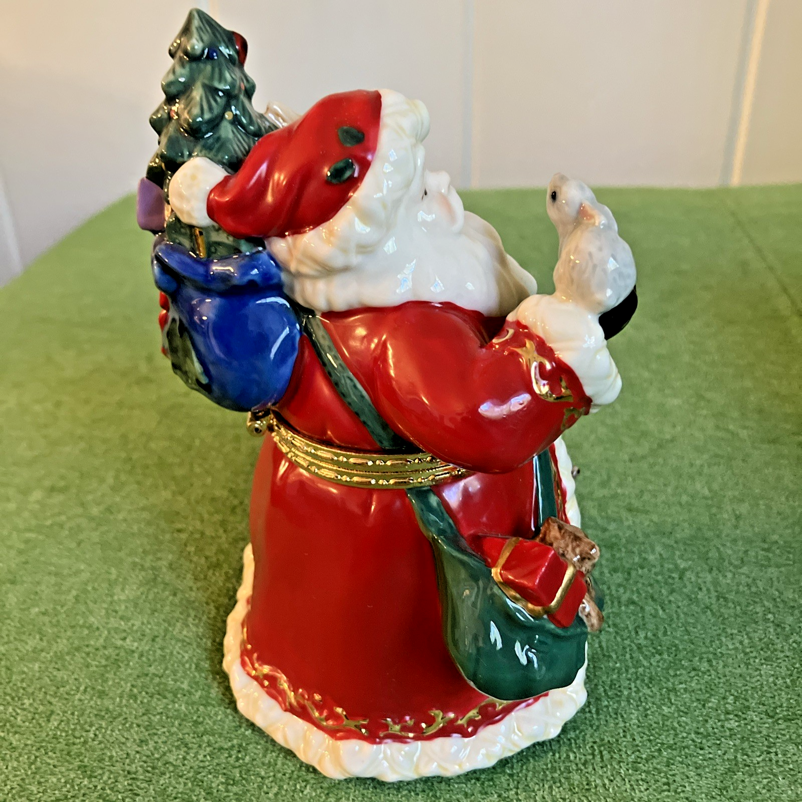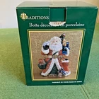 Ceramic Santa Claus w/ Animals Tree & Presents Hinged Christmas Trinket Box 6"