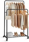 [Storage Aplenty] This 15.9"D x 35.8"W x 62.2"H metal clothes rack serves as an extension of your closet, adding tons of hanging space to keep up to 40 shirts in order [Sturdy and Durable] 25.4 mm dia. steel tubes connected by screws make a sturdy clothing rack that holds up to 88 lb and gives your heavy clothes stable support for years to come [With Storage Shelf] The bottom mesh shelf holds up to 22 lb, making it perfect for your shoes and storage boxes. The mesh is closely spaced, so even your high heels can find a place here [Easy to Move] 4 universal casters, including 2 with brakes, make it easy for you to move this garment rack from your bedroom to your coatroom and lock it in place as you need [Easy to Assemble] Labeled parts and illustrated instructions allow you to easily set up this clothes rack with wheels so you can quickly have more space to tidy up your clothes Product Description Looking for a solution to store your clothes in your bedroom, closet, or laundry room? Check out this practical SONGMICS clothes rack. It offers ample hanging space for your daily outfits. And the off-the-floor bottom mesh shelf is ready for your shoes, bags, and storage boxes. Holds Your Clothes Well The robust rail holds up to 88 lb for strong support. And the raised ends protect your clothes from slipping off. Casters with Brakes Two of the four casters come with brakes to keep the clothes rack in place as you need. Dense Mesh Dense mesh shelves hold high heels well without worrying that the heels may get stuck into the holes. Instant Closet for Jumbled Clothes Looking for a clever solution to store your piled-up clothes? You’ve found it! This garment rack offers ample hanging space for your daily outfits while taking up little floor space. Also, the off-the-floor bottom mesh shelf is ready for your shoes, bags, and storage boxes. Born to Be Strong This clothing rack for hanging clothes is made of premium metal tubes and connected by screws for greater stability and high strength. So you can feel free to hang long coats or jackets on—it can take them. Specifications: Color: Silver, Black Material: Steel Product Size: 15.9"D x 35.8"W x 62.2"H (40.5 x 91 x 158 cm) Product Weight: 9.3 lb (4.2 kg) Max. Static Load Capacity of Top Rail: 88 lb (40 kg) Max. Static Load Capacity of Bottom Shelf: 22 lb (10 kg) Package Contents: 1 x Clothes Rack 1 x Accessory Kit 1 x Instructions Add to Cart Add to Cart Add to Cart Add to Cart Add to Cart Add to Cart Customer Reviews 4.4 out of 5 stars 48 4.6 out of 5 stars 148 4.7 out of 5 stars 2,875 4.7 out of 5 stars 4,215 4.7 out of 5 stars 4,215 4.0 out of 5 stars 696 Price $39.99 $ 39 . 99 $49.99 $ 49 . 99 $53.99 $ 53 . 99 $57.59 $ 57 . 59 $59.99 $ 59 . 99 $31.99 $ 31 . 99 Grade Heavy Duty Heavy Duty Heavy Duty Heavy Duty Heavy Duty Heavy Duty Style Double Rod Single Rod Single Rod Double Rod Double Rod Double Rod Extendable Horizontal Rod ✓ ✓ Casters/Wheels ✓ ✓ ✓ ✓ ✓ Max Load Capacity 253lb 198 lb 286.6 lb 242 lb 242 lb 200lb Color Black Sliver Black + Silver Black Black Sliver Dimensions 18.1"D x 39.4"W x 61"H 17.9"D x 52"W x 63"H 17.7"D x 59.1"W x 63"H 23.2"D x 39.4"W x 63.8"H 19.3"D x 51.2"W x 78"H 20.7"D x 40.7"W x 61"H