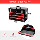 Description: 【Pull Handle 】 This product comes with a handle on both side, which not only helps to push and pull it more, but allows you to move it more freely 【With Key Locking】 Protecting the tools and items stored inside 【Ball Bearing Slide】 15KG loading capacity ball bearing slide Features: There are 3 drawers in the metal tool cabinet. The opening and closing of the drawers of the tool cabinet is very gentle thanks to the ball-bearing drawers. The robust and powder-coated steel construction is used for high wear resistance. The storage surface provides additional space for storing and arranging tools you often need. Specification: Name: 3 Drawers Tool Box Color:Black and Red Material: Steel Surface Finish:Powder Coating Size:19.69*10.63*13.86 Drawers Dimension :16.7*9*2.36 Net Weight :25.50KG