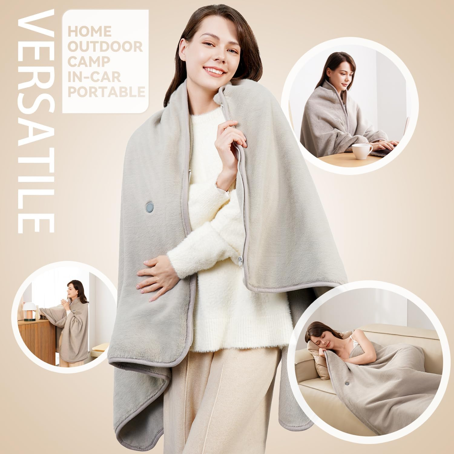 Advanced Technology: Utilizes cutting - edge carbon nanofiber heating technology to provide effective infrared heating, keeping you warm in cold weather. Multi-Zone Heating: Equipped with 3 independent heating zones that can be freely adjusted according to your needs, ensuring even heating for overall comfort. Powerful Battery: Built-in 13500mAh 22.5W fast charging power bank, supporting up to 8 hours of continuous heating for your utmost enjoyment of warmth. High-Quality Material: Made with soft velvet-like fabric that feels great against the skin, designed to be non-shedding and non-irritating, suitable for all ages. Versatile Design: This heating blanket is perfect for home use, outdoor camping, and in-car warmth, making it an ideal choice for most people, and a fantastic gift option. Product Description ZIREOT Portable Heating Blanket Infrared Heating 3 Heating Zones 13500mAh 22.5w Up to 8 Hours of Heat,Depending on the ambient temperature, it can continue heating for at least 2 hours. This product can adapt to the optimal temperature requirements for home, office, and outdoor camping. Convenient Wearing Items for Home Heat Preservation Description: It is suitable for home heat preservation, convenient to wear without affecting movement. After a single charge, it can be heated for up to 8 hours. Large - sized, Light - weighted and Non - shedding Thermal Items Description: With a large - sized and light - weighted design, it doesn't shed hair and is suitable for all ages. Washable Thermal Supplies (Precautions for Washing) Description: It is washable, but the mobile power supply should be removed before washing and do not use bleach.
