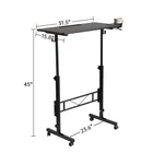 Portable Standing Desk Adjustable Height, Mobile Stand Up Desk with Wheels, Small Computer Desk for Walking Pad, Rolling Desk for Standing or Sitting Adaptable Standing Desk: Designed with treadmill users in mind, this standing desk features a 23.6 inch wide base that fits snugly around most treadmills. The large 31.5 in L x 15.75 in W work surface offers plenty of space for your laptop, paperwork, and more, allowing you to stay productive while you work out Height Adjustable for Comfort: Switch effortlessly between sitting and standing positions with this desk's adjustable height from 29.1 in to 44.9 in. Promoting better posture, it helps relieve pressure on your back and neck, ensuring comfort while reducing fatigue. Perfect for both sitting and standing tasks, this desk boosts your daily productivity Enhanced Functionality: This desk comes equipped with a removable cup holder, a built-in groove for tablets, and dual metal hooks for accessories like headphones. These smart design elements help keep your workspace tidy and organized, making your day more efficient Smooth Mobility with Stability: Featuring 4 lockable caster wheels, this desk glides easily across any floor and stays securely in place when locked. The wheels ensure hassle-free mobility while keeping the desk stable during use Durable and Easy to Clean: Built with a sturdy steel frame and capable of holding up to 200 lbs, this desk is both durable and reliable. The waterproof surface resists spills and stains, ensuring long-lasting use. Quick assembly with included tools and instructions gets your desk ready in no time