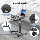 Return Policy Fast Delivery Trusted seller Mobile Standing Desk with Keyboard Tray, Mobile Podium, Computer Workstation Up to 33lbs, Laptop Sit or Stand Desk on Wheels, Height Adjustable Stand Up Table for Living Room, Bedroom, Office Product Description Healthy Workstyle: Our rolling desk adjustable height from 28.3" to 44" allows you to transit from standing to sitting at work. You can adjust the standing desk to your desired height for better posture and to help relieve neck pain caused by prolonged sitting Multi-functions: Four rolling castors enable you to move the stand with ease to your desired place, making it ideal for professional environments like offices, art and music studios, libraries, and in dentist's, optometrist's and doctor's offices Ergonomic Design: The 25.5" x 17.7" desktop can easily accommodate a laptop notebook, a 0.9in long slot can hold your PAD, phone, pens, etc. Its 3.7in high base can also serve as a side table in the living room, in the bedroom or a temporary desk in any situation Technical details: Our desk top is made of MDF materials. The premium board is waterproof, scratch resistant and very easy to clean. The mobile desk hook can hang items like earphones and laptop bag. Its retractable tray measures 23.6" x 11.8" , able to hold fullsize keyboard and mouse. The maximum load capacity for desktop and tray is 33lbs and 11lbs respectively. The design of "H"-shaped frame base ensures the stability of the table, so you can use it with ease Easy to Operate: Our mobile standing desk with keyboard tray can be set at any height. When adjusting the height upwards, press the lever with your hand and you can feel the upward force by the pneumatic spring inside the column and release the controller at your desired height. When adjusting downwards, press the lever with your hand and press the desktop at the same time Shipping Returns Payment Shipping Shipping is FREE to all addresses other than APO/PO boxes in the lower 48 states. All our stock ships from US-based warehouses. Shipped via USPS or UPS (depending on location and package weight) Unless stated otherwise, all orders will ship within 24-72 hours of your payment being processed. Check our feedback to see the great reviews of FAST shipping we offer. Returns Seller does not accept returns Payment We currently accept payment via eBay managed payments only. Once payment is cleared, we will dispatch your shipment within 1-3 business days. Please refer to the "Shipping" tab for more information regarding shipping speed to your destination.
