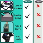 A Reliable On-the-Go Car Desk - Use your laptop comfortably at home, in the office, or on the go. This traveling lap desk provides a stable work surface, removing the need to struggle with your laptop falling. Perfect activities travel desk for adults and teen kids in the car. The ultimate laptop pad for your lap. A Well-Organized Workspace - Keep your essentials within arm's reach as you work. Mesh compartments on this airplane or car lap desk provide dedicated spaces for your snacks, phone, pens, and water tumbler in the built-in Cup Holder. Feeling the need to relax in bed while you work? This is your perfect laptop desk for bed. Convenient Laptop Storage - No need to carry a separate carrying bag for your laptop or tablet. This travel tray for adults comes with a built-in sleeve for storing your electronic devices. This perfect lapdesk has a tablet carrier bag for a convenient carry case. Everyday Convenience and Durability - Not just a car tray table, it is also perfect for knitting, crocheting and arts and crafts enthusiasts. Our portable folding tray table is built to last. Made with 600D polyester and rigid plastic, it will withstand moisture and last for years. Sleek Design & Functional - The car table tray features reinforced sidewalls to keep items from slipping off. When you're done using this lap tray, it folds down into a messenger-style tote. It becomes a handy travel bag case for carrying your supplies with you.