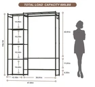 Clothing rack with shelves,Portable wardrobe closet for Hanging Clothes with Hanging Rods, freestanding closet rack shelves closet organizers and storage Do you dream of a beautiful wardrobe for your bedroom? Here´s the perfect solution for you! Start with Neprock Garment Rack. This freestanding clothes closet offers you a super sturdy and stable option for creating garment and accessory storage. It is suitable for cloakrooms, apartments, dressing rooms, laundry room, second-hand goods stores, school dormitories, etc. Makes it easy to organize messy clothes and shoes. Specifications: Color:black Material: Metal Size: 47.64"L x 11.8"Wx 63.78"H (121 x 30 x 162cm) The Max. Load Capacity of Each Shelves: 50lbs (22kg) Weight: 14.5lbs (6.6kg) Package Contents: 1 x Freestanding Closet Organizer 1 x Instruction 【Multifunction Clothes Rack】: Neprock armoire wardrobe closet with 1 hanging rod perfect for hanging tops, coats, baby clothes, long dresses, sweaters, or other heavy clothes. 4 storage shelves are perfect for folded stuff, handbags, hats, and storage boxes.The wardrobe closet can hold suitcases and large storage bins at the top and comes with extra bottom space for shoe storage. The additional hooks can be used to hang the bags and hats. 【Keep Your Clothes in Sight】: This portable closets for hanging clothes offers open storage for your clothes. So when you need to pick your outfits for a big day, everything you have is right at your fingertips. 【Sturdy Structure】: our wardrobe clothes organizer is made of 16mm high-quality steel tube, not easy to bend, and each shelf is strong enough to hold up to 50 lb weights. Different from other portable closet connect the tubes with weak plastic connectors, our closet system fixes the steel tube with screws, which means more sturdy and stable. 【Space saving Orgnizer】:The size of the closet storage is 47.64"L x 11.8"Wx 63.78"H, providing spacious storage space and strong load capacity. That creates a spacious space for a bedroom, cloakroom, clothing store, and laundry room, to meet your long-term and all aspect storage need. 【Adjustable Wide Feet Base】: Neprock freestanding closet is equipped with 6 adjustable wide feet bases to improve stability. Even if you put the wardrobe on uneven ground, you can adjustable the feet height to keep baby closet stable. 【Long Service Life】:All metal parts are powder-coated which protects the baby clothes organizer from water and rust to ensure years of use. The classic black closet rack fits all home decoration styles. 【Easy to Assemble】: The closet shelves comes with clear and intelligible installation instructions, and the steel tubes have been numbered for easier installation. No power tools needed,the closet organization can be assembled quickly, and then all you have to do is hang up your beautiful garment. 【100% Satisfaction】If any problems with the clothing rack with shelves, don't hesitate to contact us. We replace or refund any defective products.