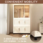 Specification Product Information Item Code: W2699P253195 Product Type: General Item Product Name: Portable Wardrobe Closet Storage Organizer for Clothes,Clothes Dresser,9 Magnetic Doors-9 Cubes & 1 Hanging Rod,6 pcs hangers , Baby Wardrobe Storage Cabinet,White Place of Origin: China Main Color: Cream White Main Material: Polypropylene Filler: Polypropylene Product Style: American Design,Luxury,Modern Use Case: Primary Living Space Product Dimensions Assembled Length (in.): 36.22 Assembled Width (in.): 17.72 Assembled Height (in.): 62.20 Weight (lbs.): 35.49 Package Size Length (in.): 36.81 Width (in.): 18.11 Height (in.): 15.75 Weight (lbs.): 39.00 Product Features 【LARGE STORAGE CAPACITY】Wardrobe expanded size:36.22"*17.72"*62.2". Wardrobe closet has 2 cubes sections,higher large cube armoire wardrobe closet has studry hanging rods which can hang skirt,8 small cubes can storage clothes,quilts,toys,books,blankets,sheets,baby items,etc.Classification storage design makes you easier to take clothes. 【SAFE MATERIAL】Quality you can trust! Our heavy-duty closet wardrobe is made of high-quality PP and ABS materials, guaranteeing durability and reliability. It is more reliable than fabric closets and more cost-effective than wooden ones. Each compartment can hold up to 50 lbs, with the top supporting up to 145 lbs. 【MAGNET DOORS WITH FLEXIBLE ARRANGEMENT】Keep your clothes protected! Each door of our portable closet is equipped with magnets, ensuring a secure closure and keeping your clothes safe. The connection buckles lock two doors together, allowing you to conveniently open a single line of doors for easy access. 【QUICK ASSEMBLY】Skip the complicated steps! With our portable closet, simply straighten the frame and fix the doors up for a fast and easy setup. No more hassle with assembling. And the foldable design is very convenient for renters, students, temporary residents, travelers and organization enthusiasts who often move. 【VARIOUS DISPLAY OPTIONS 】 Our wardrobe offers various installation and display options, allowing you to customize it according to your preferences for a more aesthetically pleasing and enduring look. Description