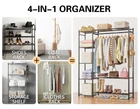 This portable wardrobe is a game-changer for extra storage! The sturdy steel frame holds up to 60 lbs, and the 4 shelves, 3 hooks, and shoe rack keep everything organized. Perfect for small spaces—easy to assemble and move. Love how much it holds without taking up too much room!