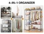 Portable Wardrobe, it is the perfect solution for all your storage needs. This versatile wardrobe offers: 4 levels of storage area 3 hooks 2-tier shoe rack area A hanging area Provides ample space for organizing clothes, shoes and accessories. EXCELLENT CONSTRUCTION: The portable wardrobe is designed with convenience and durability in mind, using sturdy and thickened steel tube construction. ALL-STEEL MESH COMPARTMENTS: All have an extraordinary load-bearing capacity of 60 pounds, ensuring that your items are stored safely and worry-free. POWDER COATING: The metal parts are powder coated to protect the clothing organizer from water and rust, ensuring years of use. SCREW LINKS: Screws securely connect the various parts of the closet together. ADJUSTABLE BALANCE FEET: to ensure stability on any surface. ANTI-TIP KIT: Secure this closet organizer to the wall with the anti-tip kit to prevent accidental tipping. Clear instructions and labeled parts ensure hassle-free assembly so you can have this coat rack ready in no time. Whether you need extra storage space in your bedroom, laundry room, entryway, nursery or even guest room, this portable wardrobe is the ideal solution. Say goodbye to clutter and hello to an organized and stylish living space. Versatile Storage Solution: The Wardrobe Closet is equipped with four compartments for folding clothes, handbags and storage boxes. The two-tier shoe rack holds fourteen pairs of shoes. The hanging rod area is designed specifically for hanging wrinkle-prone garments such as blouses, jackets, and long dresses. wardrobe is made of high-quality steel, and the top of the wardrobe can accommodate suitcases and large storage boxes. We also provide three additional hooks for hanging bags and belts. Sturdy and Durable: The wardrobe organizer measures 45.67*11.81*61.20 inches. This hanger is made of thick metal tubing, ensuring excellent durability. The diameter of each main steel pipe is 16mm, ensuring bending resistance. The wardrobe system uses screw-fastened steel pipes to provide stability and sturdiness. Additionally, adjustable balancing feet enhance stability on any surface. Each storage compartment can hold up to 60 pounds. Open Storage Design: Keep all your clothes within sight and reach. The Portable Wardrobe Closet offers open storage space for your garments, allowing you to quickly find what you need and save a lot of time. Suitable for Various Home Spaces: This freestanding closet system is suitable for various scenarios. In the bedroom, it can serve as a temporary clothes rack for storing the next day's outfit. In a walk-in closet, you can use multiple wardrobe racks to create a spacious and personalized storage area. It can also be used as a plant rack on the balcony, a coat rack at the entrance, or a baby wardrobe in the nursery. It perfectly complements any home decor style. The Portable Wardrobe is the ideal solution for bidding farewell to clutter and creating an organized and stylish living space. Before starting the assembly, please carefully read the assembly instructions.If any of the holes are not aligned left or right, you can loosen the screws that were previously tightened, align the holes and then tighten the screws.