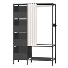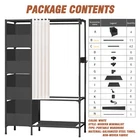[TITLE] Description: This multifunctional portable wardrobe features a semi-open design for quick and convenient clothing selection, complemented by an upgraded curtain for privacy protection. It includes a clothes hanging rod, storage shelves, and 4 storage drawers, with elevated legs for hidden shoe storage, catering to diverse storage needs. Made with non-woven fabric and galvanized steel tubes, it is sturdy, durable, and built to last. Ideal for organizing clothes, bedding, toys, pet supplies, and more, it adapts seamlessly to various spaces. Its tool-free assembly makes setup simple and enjoyable, offering an efficient storage solution to keep your space tidy and elevate your lifestyle. Features: 【Semi-Open Design for Easy Clothing Access】 Unlike traditional enclosed wardrobes, the semi-open design offers clear and convenient clothing selection. The upgraded curtain design operates smoothly while ensuring privacy and a serene living environment. 【Versatile Storage Configuration for Varied Needs】 The wardrobe features a hanging rod, storage shelf, and 4 storage drawers designed for outerwear, dresses, bed linens, and folded clothes. Its elevated legs not only enhance stability but also provide a dedicated space for shoes, whether heels, sneakers, or casual footwear. 【Premium Materials for Durability】 Constructed with a non-woven fabric cover, fabric shelves, and galvanized steel tubes, the wardrobe ensures long-term stability and durability. It withstands daily wear and tear, maintaining its form even during relocations. 【Multipurpose Use for Various Scenarios】 Beyond clothing storage, this wardrobe is perfect for organizing bedding, toys, pet supplies, and seasonal items. Whether placed in bedrooms, living rooms, hallways, or kids’ rooms, it enhances space organization and functionality. 【Easy Tool-Free Assembly】 Designed for straightforward assembly, users can easily connect tubes to plastic connectors by following the manual—no additional tools required—making the DIY process effortless and enjoyable. Specification: Type: Portable Wardrobe Material: Galvanized Steel Tubes, Non-Woven Fabric Color: Black Dimensions: 41.3×17.7×67in / 105×45×170cm Style: Modern Minimalist Package Contents: Fabric Drawers × 4 Long Tubes × 11 Short Tubes × 42 Leg Tubes × 6 3-Way Plastic Connectors × 20 4-Way Plastic Connectors × 6 Straight 3-Way Connectors × 2 Large Shelf Fabric × 2 Small Shelf Fabric × 1 Hanging Hooks × 2 S-Shaped Hooks × 4 Foot Caps × 6 Note: 1.Please allow slight deviations due to manual measurements. 2.The actual product may differ slightly from the images due to display settings and lighting conditions. 3.Product details may vary slightly between manufacturing batches. If minor differences are a concern, please purchase with caution. Thank you for your understanding. 4.If you have any questions about the product, please feel free to contact us. - We can only accept Paypal payment only. You can send payment to our paypal account by many payment methods(Credit or debit card through PayPal. 1. Items are US stock. 2. Item will be shipped out within 1- 2 Working days upon your payment completed. 3.Please do not hesitate to contact us if you have any questions about our products. We will be responsible for any damages or losses incurred in the shipping process. 1.If there are any problems with our products,Please feel free to contact us.We will always here to solve them for you.You don't need to contact ebay or paypal.And please DO NOT leave us Neutral/Negative feedback,It won't help the problem to be solved.And it is the worst hurst to a seller.We should try our best to make a happy easy transaction. 2.If you are satisfied with our products and our service,please tell your friend and leave us positive feedback;if you are not satisfied with our products or service,please DO tell us. 3.After receiving the item,you could contact us within 30 days.Refund will be given as money back or item exchange. 1. Usually, we reply for the messages within 24 hours, if you do not get response within 1-2 Working days , please check your Messages box one more time or Please email us AGAIN. 2. Email is the priority of our customer service, if you can't get us, please choose live response. 3. Positive feedback is automatically done once the payment is cleared. We appreciate your feedback. 4.The star-scores are very important to us. If anything about your transaction did not meet your expectations. Please let us know and give us the opportunity to work out for you before you leave feedback. Working Day: Monday to Friday Working Time: 9:00 am to 18:00 pm On Feb 24, 2025 at 09:03:51 PST, seller added the following information: