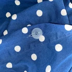 Elevate your bedroom decor with this charming Pottery Barn PB Teen Duvet and Shams set in a playful polka dot Dottie pattern. The set includes a cozy duvet and two standard pillow shams, all made of 100% cotton for ultimate comfort. The buttons closure type ensures a secure fit, while the machine washable and tumble dry features make it easy to care for. Perfect for teens, boys, girls, and kids, this country-style duvet set comes in a lovely blue and white color and fits queen-size beds. Measures 86” x 86”. With its cheerful Polka Dot Dottie theme, it will add a touch of whimsy to any bedroom. Get this must-have bedding set today and give your room a stylish and cozy update! Medium blue duvet and 2 std shams. One of the 4 comforter ties inside is missing. I have washed all of these. There is some down residue inside corners. Sold as is. Great preowned condition. No stains or rips. See all photos as they are a part of the description and condition.