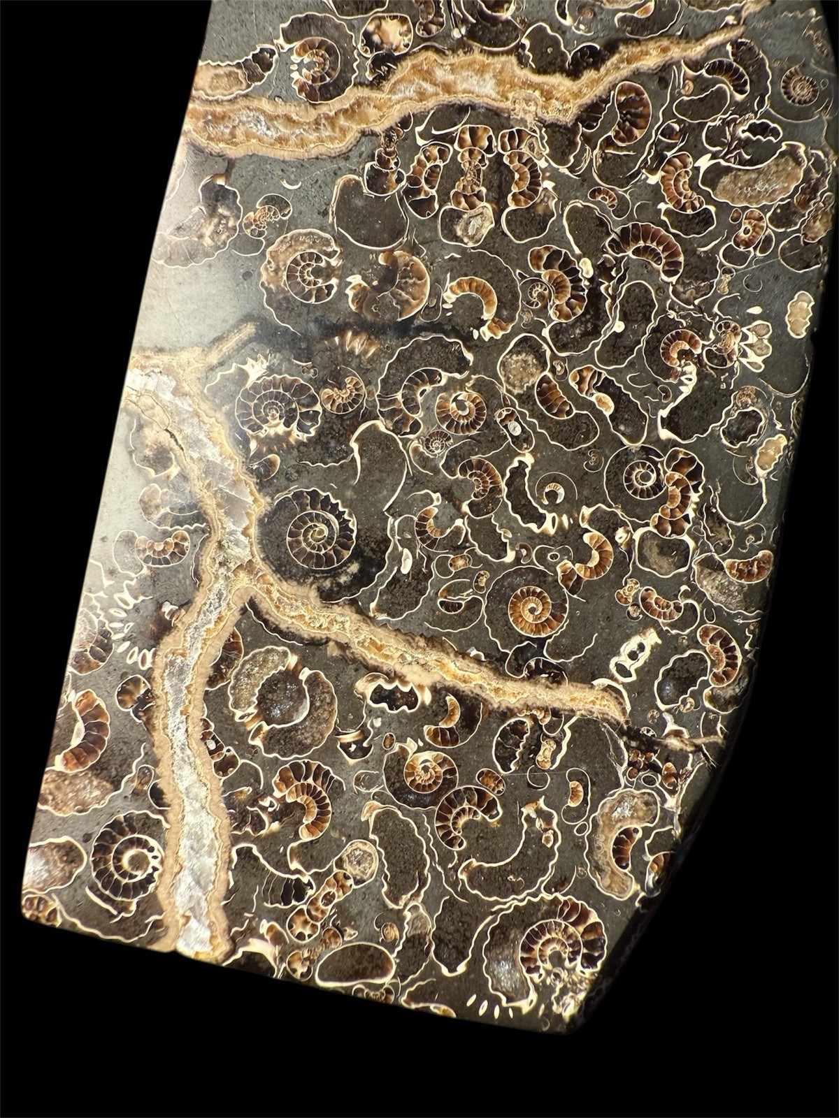 A grade + Polished slab of ammonite deathbed from Marston Magna. Very rare to get a piece this quality these days. Jurassic - 200 million years old Measures - 23.5cm x 10.7cm