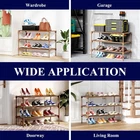Have you ever tripped over by shoes in your entryway or struggled to find the right pair in your closet? Look no further than this shoe rack shelf for entryway. Here are the reasons why this entryway shoe rack is a must-have. 1. Ample storage: This shoe rack shelf for closet can hold up shoes, making it a perfect shoe organizer for bedroom closet and entryway. You can also DIY the shoe shelves for larger storage. The shoe stand is capable of holding shoes, bags, and other stuff. 2. Easy assembly: All you need is in the package! No screws or tools are needed! With a simple structure, you can have your new shoe rack for entryway up and ready to use in minutes. SPACIOUS STORAGE: This shoe rack offers plenty of space to accommodate your everyday footwear, including sneakers, heels, and slippers. It's designed to meet all your storage needs efficiently. STUDY MATERIAL: shoe rack for closet floor is crafted with rust-proof coated metal tubes and sturdy metal frames to ensure durability and stability, preventing deformation over time. The thick, non-woven fabric is also made to last, resisting damage from regular use. EASY ASSEMBLY: provides step-by-step instructions and installation video to ensure quick and easy tool-free assembly. With only 4 steps you can easily set up this shoe rack organizer without screws or any other tools. STACKABLE DESIGN: closet shoe organizer features a stackable design that is perfect for customizing storage to fit your space. You can pile up 2 or more racks to organize your shoes, bags, suitcases, and more in a limited space. MULTI-PURPOSE USE: With its compact size, this free-standing shoe rack fits seamlessly into small spaces around the home like garages, walk-in closets, and living rooms. Make the most of tight storage areas with this versatile closet shoe rack.