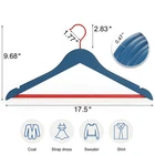 Made of solid hand-crafted wood from renewable forest and coated with eco-friendly paint to prevent moisture and scratching to your clothing Durable 360-degree swivel hook allows you to hang clothes from any angle, and the surface is chrome-plated and rustproof The bottom pant bar is wrapped with a clear grooved strip to grip pants, slacks, trousers or jeans so they don't slide off Standard adult size and perfectly shaped notches make it ideal for suits, coats, jackets, camisole,shirts, blouses, dresses and more What You Get: 16-pack of the new released wooden hangers with contrasting colors and friendly from