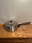 This Prestige stainless steel sauce pan is a must-have addition to your cookware collection. With a round shape and silver color, it is an original piece that is compatible with induction, electric, and gas stoves. The pan is made of high-quality 18-8 stainless steel, which ensures durability and longevity. The set includes one sauce pan, and it is a vintage item that was manufactured in the United States. The surface coating is also made of stainless steel, which makes it easy to clean and maintain. This sauce pan is perfect for cooking sauces and soups, and it is a great gift for any kitchen enthusiast.