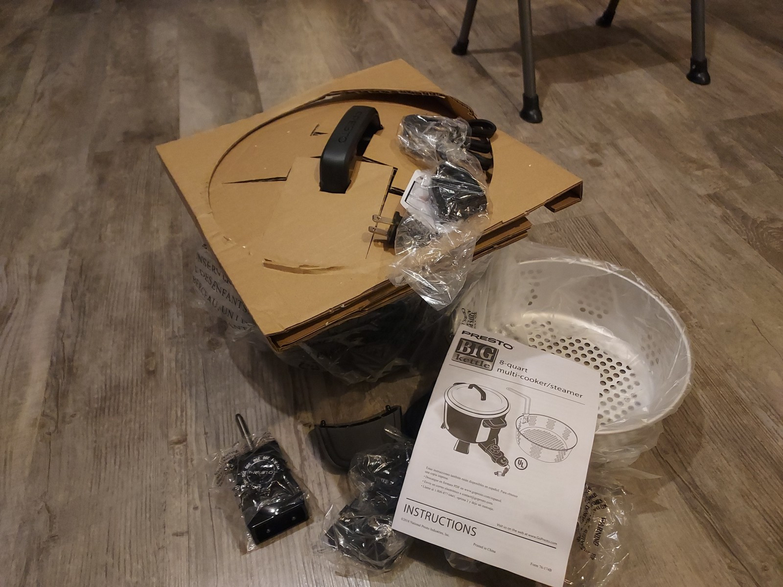 Welcome to World of Toys ! Check out our other auctions and store listings at The World of Toys for combined shipping!!! Presto® Big Kettle™ 2.75Qt Multi-Cooker/S teamer For Frying, Boiling, & Roasting Packaging NOT included Presto Big Kettle 2.75 Qt. Multi-Cooker/Steamer 06008 has an extra-large multi-cooker/steamer with tempered glass cover steams stews roasts boils deep fries and more. The Presto? Big Kettle? multi-cooker is 60% bigger than our classic Kitchen Kettle?. It deep fries up to 8 cups of food uses up to 2.75 qt of liquid to cook soups rice pasta and casseroles steams vegetables and roasts beef pork and poultry. Enjoy stick-free cooking and easy cleaning with the nonstick surface inside and out. It?s so versatile you ll use it every day! The steam/fry basket is perfect for steaming blanching and frying and the basket hooks onto the side of the multi-cooker for easy draining. Accurate cooking temperatures are maintained with the Control Master? heat control. Heavy cast aluminum base provides even heat distribution. Fully immersible and dishwasher safe with the heat control removed.