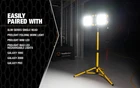 Use this model with: Slim Series 15 W Single Head Prolight Folding Work Light Proflight Mini LED Prolight Max LED Rechargeable Lights Galaxy 1000, 2000, [ADJUSTABLE AND EXTENDABLE] The adjustable tripod extendeds up to 6 feet which makes it the perfect stand to get your LED's off the ground [GREAT FOR PAIRING] the tripod can be easily paired with the 15W slim series dual head; the 30 and 50W slim series single head as well as the 30W dual head utilizing the included crossbar [EASY TRANSPORTATION] the light weight aluminum body allows you to fold up and transfer your stand wherever needed [BUILT TO LAST] the durable alloy aluminum body is built to withstand the toughest of job sites [STORES EASILY] when the tripod is not in use; it can eaily be folded up and stored until your next project