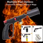 Multi-Fuel Propane Torch Head: Propane and Ethane Tanks with MAPP Interface. Propane Tank is Not Included (For your safety, please keep out of reach of children) Versatile Grill Torch: This torch is perfect for a wide range of culinary tasks, including caramelizing sugar on top of creme brulee, glazing a baked ham, searing a steak, roasting bell peppers, melting cheese, and toasting breadcrumbs. Additionally, it is useful for lighting your grill, campfire, and any other items you can think of. Propane Cooking Torch with Piezoelectric Ignition and Adjustable Flame Function: This searing torch features a convenient push-button piezoelectric ignition, ensuring easy operation and high safety. Simply press the red button to ignite the torch. Once lit, you can adjust the flame size by turning the valve. This powerful kitchen cooking torch can reach a flame temperature of up to 1800 °C.. Safe and Durable Design: Equipped with a long angled nozzle and a burn-free finger guard, the torch ensures optimal safety. Made with professional-materials, the starters is built to last and easy to use. Great Gift: The bbq torch is an ideal gift for outdoor grilling enthusiasts, chefs, and campers. The perfect sear torch suitable for various occasions, including stocking fillers, Christmas gifts, birthdays, weddings, graduations, and any cooking event.
